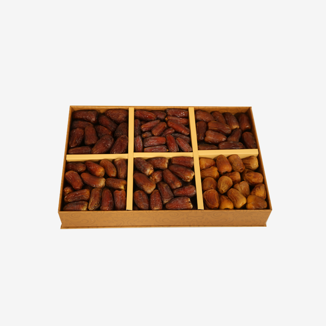 استمتع بمزيج من أجود أنواع التمور العضوية في بوكس فوالة المجلس يحتوي على 6 أصناف