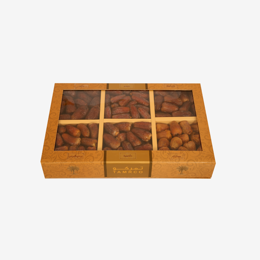 يرجى ملاحظة أن الأصناف قد تختلف حسب التوافر الموسمي، لضمان تقديم التمور الفاخرة والجودة العالية.